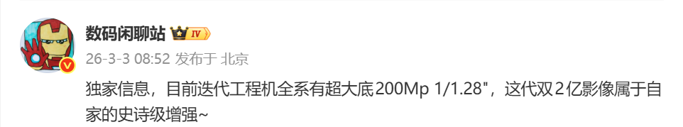 【CNMO科技消息】3月3日官网股票配资,数码博主“数码闲聊站”爆料称,目前有一款迭代工程机全系搭载超大底2亿像素主摄。根据网友猜测,这款手机为小米18系列。