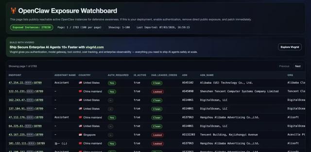 像这个网站,展示的都是被泄露出来的OpenClaw,清一色默认端口且掌握着系统的最高权限。