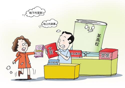 线上代刷课、线下代签到,期末考试邮寄试卷和答案……部分中介机构违规为成人教育学生提供从报名到毕业的全程教务服务。部分高校管理不到位,成人教育流于形式,沦为文凭批发,严重损害了高等教育的权威性和公平性。(据《经济参考报》4月7日报道)