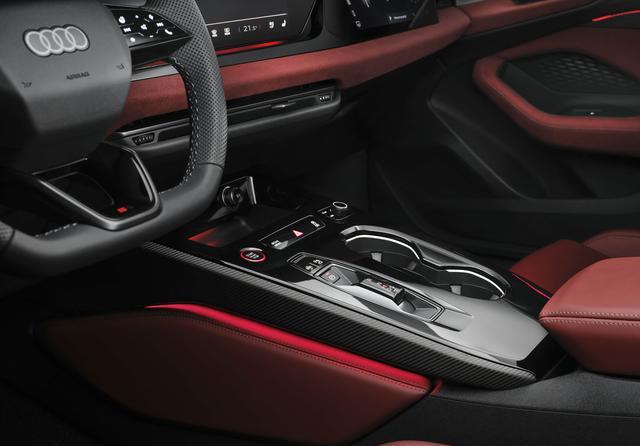 内饰方面也是家族化造型,提供有三幅式多功能方向盘、曲面双联屏、副驾驶娱乐屏以及电子换挡机构,而且加入了碳纤维风格饰板进行装饰,彰显了性能车的身份。